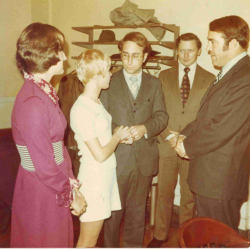 Jack Beatty, (second from right) served as best man to Frank Woodside at the Hamilton County Courthouse on Friday, November 15, 1974, as Frank and Julie Woodside (nee Moses) were married before the Honorable Thomas Heekin (far right). (Photo courtesy of Frank Woodside.)