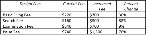 The USPTO found that design applications have historically been largely subsidized by utility patent fees, with current design fees covering only about 45% of actual costs. Accordingly, the Final Rule increases combined fees for filing, searching, examining and issuing a design patent from $1,760 to $2,600. Additionally, Hague and International design (U.S. designation) fees have also increased by 27-76%.